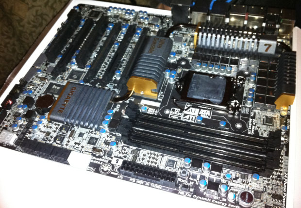 La GA-P67-UD7 utilizza un VRM a 24 fasi per alimentare il processore su socket LGA1155. Tra gli slot di espansione, quattro PCI- E 2.0 x16, sembra che ci sia un bridge PCI-E (probabilmente nForce 200), che gli permette di avere 2 slot in modalità x16, oppure 4 slot in x8. Ci sono due slot PCI e uno PCI-E x1. La connettività include sei SATA 3 Gb/s, due porte SATA 6 Gb/s interne, due porte gigabit Ethernet, 8 canali audio HD , quattro porte USB 3.0, FireWire, ed eSATA .